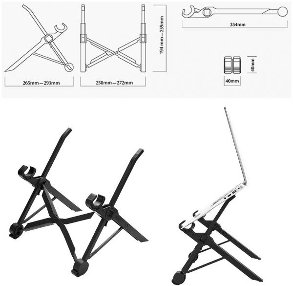 It can withstand up to 10KG of weight. Suitable for laptops of less than 2cm thickness and more than 27.5cm length.