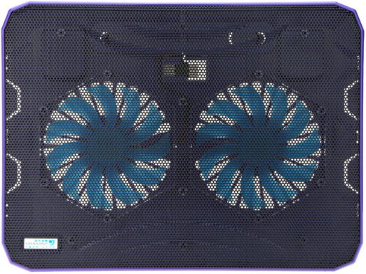Features:* Suitable for laptop up to 17inch.* Exquisite metal mesh provides stronger cooling capacity.* Two 140mm fans with blue LED light dissipate heat effectively.* Powered by USB cable with pass-through for not occupying your USB resources.* Two different height settings provide you excellent comfort.* Ultra silent, giving you a comfortable environment.Specifications:Rated Voltage: DC 5VOperating current: 0.65A (Max.)Power: 3.25WFans: 2Fans Speed: 1200±10%RPMAir flow: 74.35CFMNoise level: 15dBA Material: ABS & metalColor: purple Item Weight: 572g / 1.262LbItem Size: 36 * 27 * 2.1cm / 14.17 * 10.62 * 0.82in (L * W * H) Package List:1 * Cooler Fan Pad