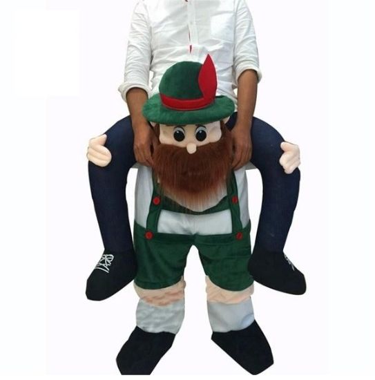 描述:This hilarious costume features a one-piece suit with false human legs. Jump inside this hilarious Carry Me Bavarian Guy costume and look like you’re being carried around on his shoulders. You can wear to walk into a free performance figures, lively and sweet lifelike form. Wear in Commercial Street, children's playground, pedestrian street, parks and public photo, theme park campaign, a variety of large-scale gatherings, birthday parties, opening ceremonies, sporting events, weddings, carnivals Sixth, kindergartens and public welfare activities. performances, advertising, corporate LOGO display. etc. Adult: One Size (Fits people with 150 to 190 cm height) waist variable up to size 40 Products Material high-quality plush Fabric 100% polyester. shearing super- soft. Upper White Shirt is not included (Normal shirt)