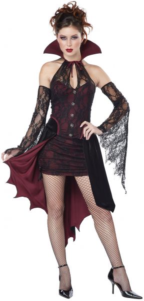 Face it, you didn't spend three days riding across Transylvania in a coach to sit around and watch reruns on Netflix. You came to party! Take charge of your Halloween plans by going with this Vampire Vixen costume. With this exotic look you'll have total control over your destiny. Throw away the remote, grab a pair of heels and drag Dracula out the front door... because it's going to be time to hit the town! - Dress - Underskirt - Pair of Sleeves