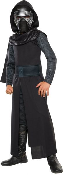 Some villains are born evil. Others require a scary outfit and a lightsaber to really ge the evil thing going for them. This Child Classic Star Wars Ep. 7 Kylo Ren Costume helps your kid jumpstart his career in villainy. It has the intimidating look from The Force Awakens film. - Robe w/ hooded cape - Belt - Mask