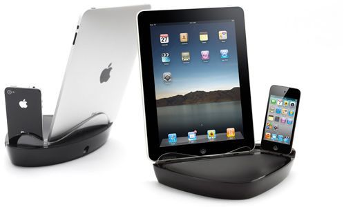 Your iPad and your iPhone (or your iPod) get seats of honor in PowerDock Dual's built-in charging dock.