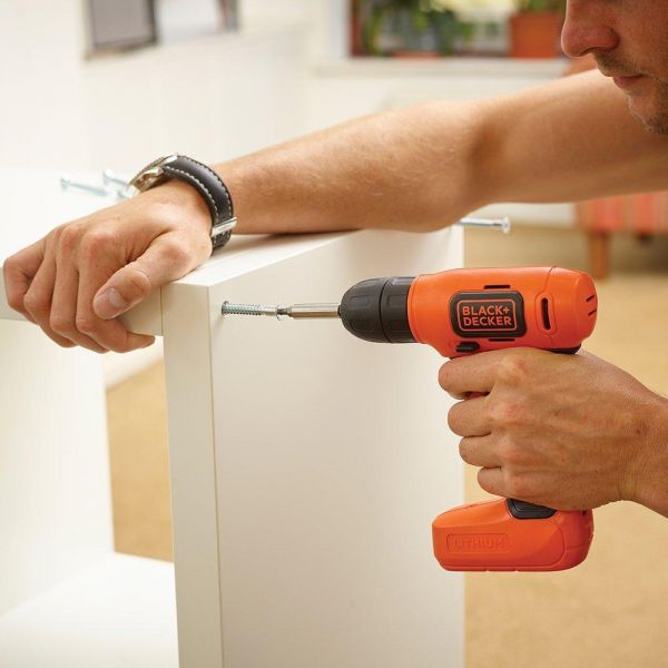 BLACK+DECKER 7.2 V Compact Cordless Lithium-Ion DrillThe BLACK+DECKER 7.2V Drill is compact and lightweight and is ideal for any light drilling and screw driving tasks around the home and garden.Powered with Lithium-Ion 1.5 Ah battery, it has a drilling capacity in wood up to 20 mm. It also features forward/reverse switch allowing the user both, tightening and loosening applications.Variety of ApplicationsThis drill is ideal for all light domestic drilling and screw driving applications. It can be used for flat pack furniture assembly, hanging shelves, pictures, curtains or blinds. Thanks to its compact size, it is ideal wherever a larger size drill cannot reach, making it handy for all these smaller DIY jobs around the house.Cordless ConvenienceThe product is fitted with a 7.2 V Lithium Ion battery which will hold its charge for up to 18 months when idle. Lithium Ion batteries are smaller and lighter than conventional NiCd / NIMH batteries, they last longer, yet offer the same power ideal for all light drilling and screw driving tasks around your home.The tool comes with a micro USB charger allowing you to charge the tool in only 2.5 h to charge from empty battery.Black and Decker Cordless Compact Drill BDCD8-B5 features Lithium Ion battery holds over 80 percent of its charge over 90 days whilst idle, and No need to charge unit before each use.Micro USB charging adapter and LED battery charging indicator.Ultra compact and lightweight - ideal for use in those hard to reach confined areas.Forward / Reverse feature allows both tightening and loosening applications.Clutch Mechanism: No.Features Reverse Action and Soft Grip.Number of Gears: 1.Charger Type: 600mA USB Charger.Used for Hanging Shelves, Pictures, Curtains, Blinds.Used for Flat Pack Furniture Assembly, All Domestic Drilling, All Domestic Screw driving etc.
