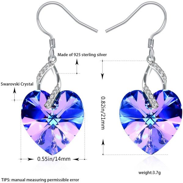- Design Concept: Exquisite heart-shaped blue Crystal from SWAROVSKI, beautiful and delicate. The blue heart crystal earrings express the deepest love.