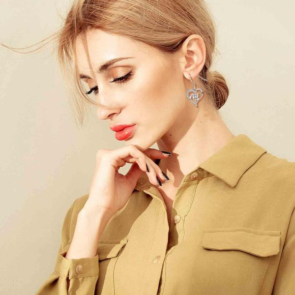- DESIGN CONCEPT:The design of this one is unique - heart-shaped Swarovski Elements Crystals inlaid in the central, Earrings body lines are also like two hearts entangled, beautiful yet romantic. It's not only a good gift to express "true love" ", but also to bring the wearer a unique good mood.