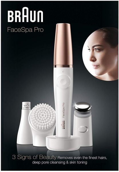 The Braun FaceSpa Pro 911 is an excellent skin toning system that helps you in enhancing your beauty. You can effortlessly cover all the flaws of your face with this Braun face spa and achieve a younger look. This device is a 3-in-1 facial epilation, cleansing and skin toning device. With the epilator of this Braun face spa device, it is easy to remove facial hair right from their roots. The cleansing brush removes all the impurities from the skin. With this Braun 3-in-1 cleansing device, you can give your skin a pore-deep treatment without harming even the most sensitive skin.