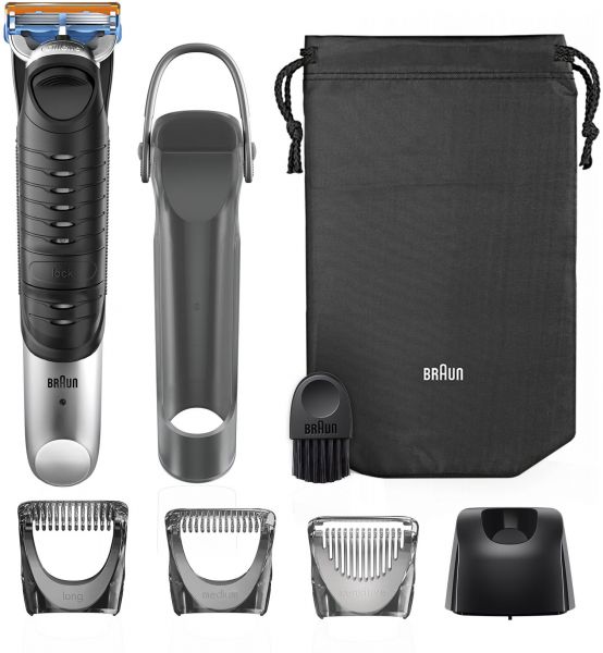 The Braun Body Groomer comes with a fine trimming element that features smaller teeth than regular beard trimmers. This works to minimise any nicks and cuts for worry-free trimming on delicate areas like the armpit or groin. The three trimming combs allow you to choose the exact length of your body hair (0.6mm, 3mm, 8mm).