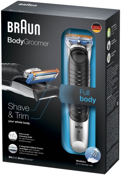 The Braun Body Groomer is the perfect tool to maintain all areas of your body; from the chest and abs, to your armpits and groin. 100% waterproof, it allows you to manscape in the shower to complement your existing routine. As a 2-in-1 device you can trim and clean-shave your body hair in one movement, making your grooming routine fast and hassle-free.