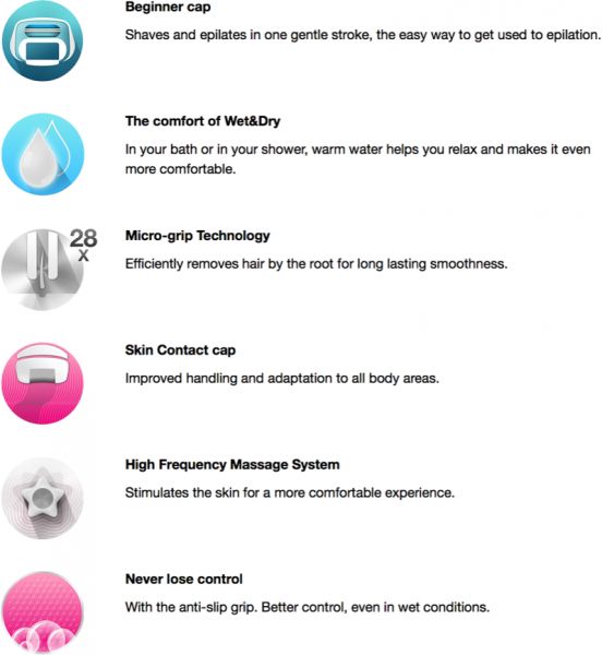 Micro-grip Technology : Efficiently removes hair by the root for long lasting smoothness .