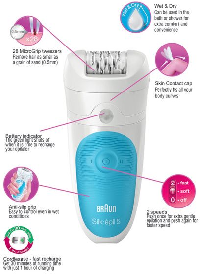 Braun Silk epil 5 5-511 Wet & Dry Cordless Epilator Starter kit including new beginner Cap