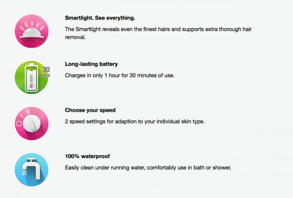 Smart light. See everything : The Smart light reveals even the finest hairs and supports extra thorough hair removal .