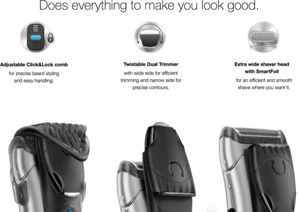 - Extra wide shaver head with SmartFoil. Shave your style : The extra wide shaver head is equipped with a flexible SmartFoil, for a smooth and clean shave in only few strokes.