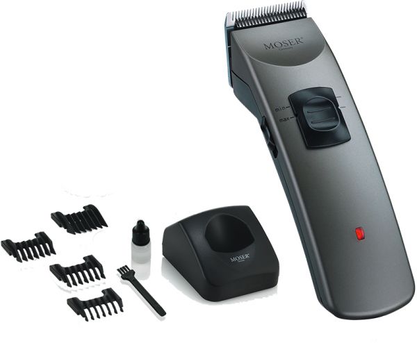 Carry around the handheld professional clipper from Moser wherever you go to get a clean look. A DC motor runs it which is powered by a rechargeable battery. A set of stainless steel blades of the Star Blade quality are bundled with it.