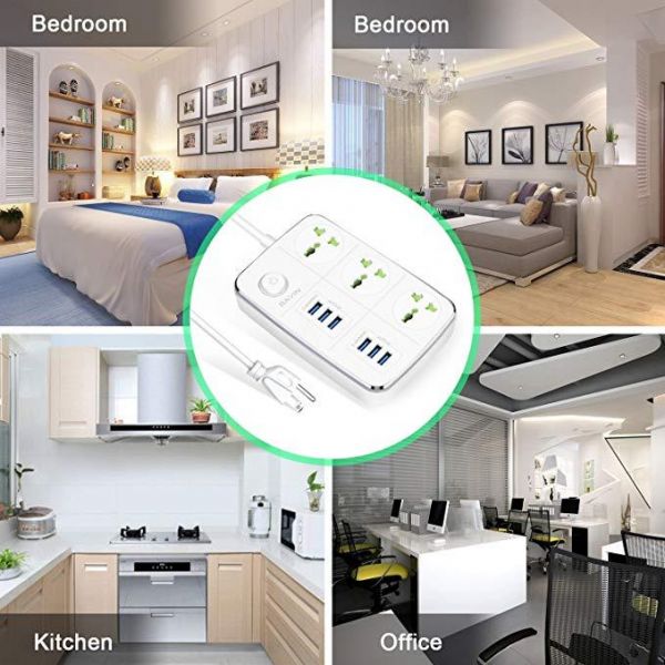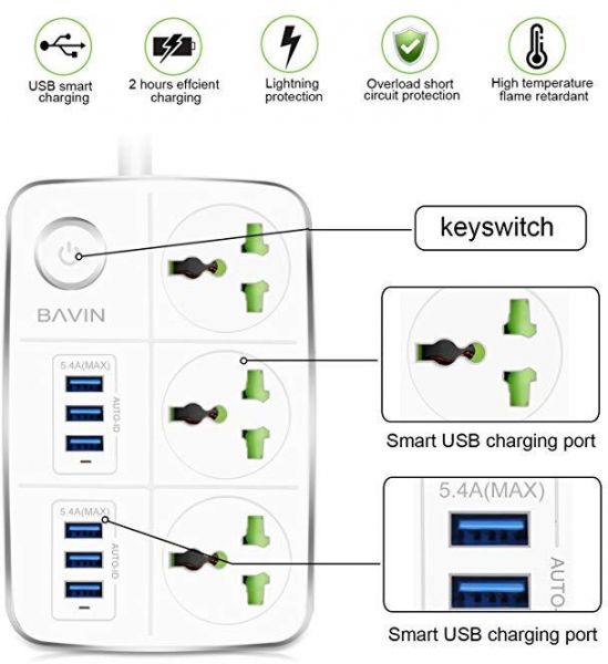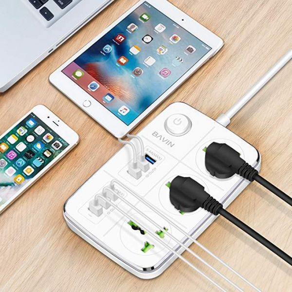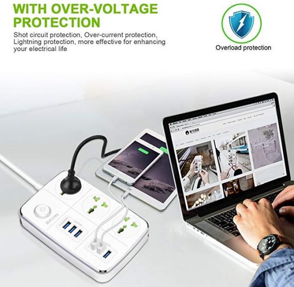 Bavin 3-Outlet Surge Protector Power Strip with USB Charging 6 Ports 5.4A/27W, 5Ft Heavy Duty Extens