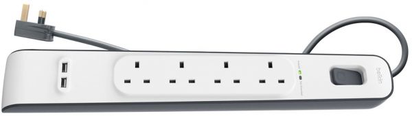 This Belkin surge protector features two integrated USB ports that lets you charge your portable devices quickly while protecting them from damage and data loss. These USB ports charge at 2.4A, which make them ideal for tablets and smartphones.