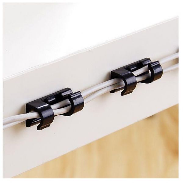 Cable Clips Organizer - 20 pcs - Self-Adhesive Drop Wire Holder Cord Management - Black