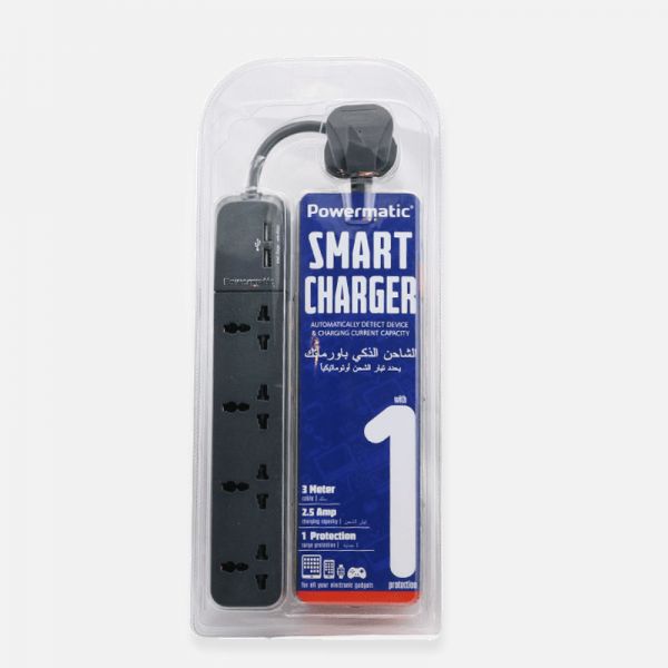 Powermatic USB 4 Outlet CE4G – Dual USB Charger: The built-in Smart IC Technology for mobile/tablet charger, automatically detects device manufacturer/model and then automatically assign maximum needed charging current; making it capable of charging all mobile devices and tablets etc. A total 2.5 Amp charging current, it is equipped with Output Short Circuit Protection and Over Current Protection universal USB charger that lets you charge most products in the market. Protect your Devices from Surge and Spikes: This product is equipped with Surge protection device to protect connected equipment from 1 type of power disturbances (Surge).