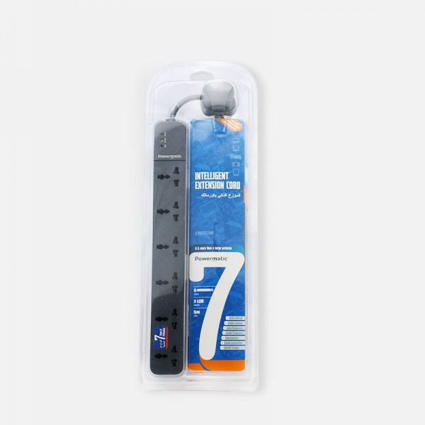 Powermatic 6 Multi-Oulet Smart Extension (Universal Type) Model PE6U - 5 Meter Cable - Microprocessor based solution dedicated to providing comprehensive protection; preventing electrical disturbances from reaching your connected devices. When any of the main 7 disturbances are detected Powermatic automatically disconnects supply, keeps monitoring and then reconnects only after predetermined Smart Delay Timer of 2 sec. – 10 sec. to ensure continual supply of quality power only gets to your connected devices. The innovative software embedded in Powermatic makes it capable of detecting “Electrical Sparks” resulting from loose connections which can seriously damage Electronic devices and causes fire accidents and even detects unstable power supply.