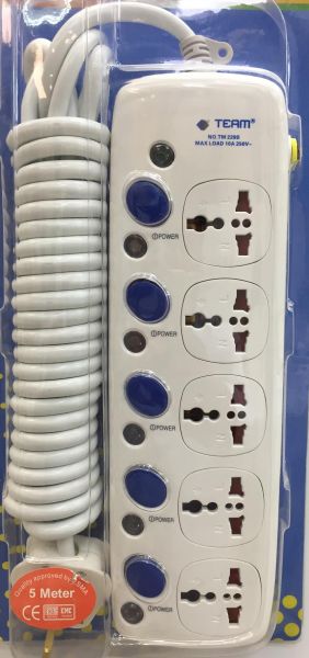 Team Power Extenssion 5-Switches Ports & 5-Meter Wire Length for Max Load 10-Amps or 2500 Watts With