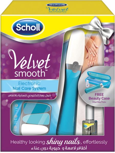 Scholl's Velvet Smooth™ Electronic Nail Care System is the perfect and effortless way to keep your toe and finger nails looking natural and shiny. The easy to use device has a simple 3 step system: