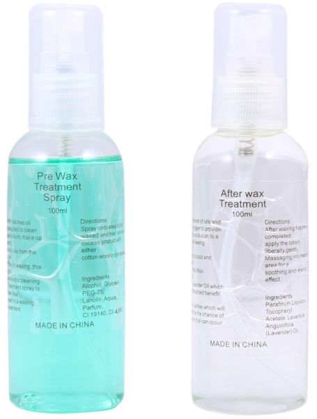 Includes: Warmer, 2 depilatory gels, 2 bottles of pre wax treatment spray and power cord