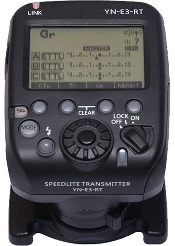 Convenience features include flash exposure lock, AF beam focus assist, modeling strobe and 9 custom functions. The YN-E3-RT transmitter will run for 10 hours of continuous use on AA/LR6 alkaline batteries. A power saving function shuts the unit down after being idle for 5 minutes to conserve batteries.