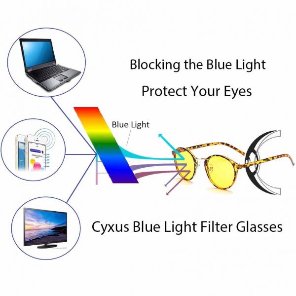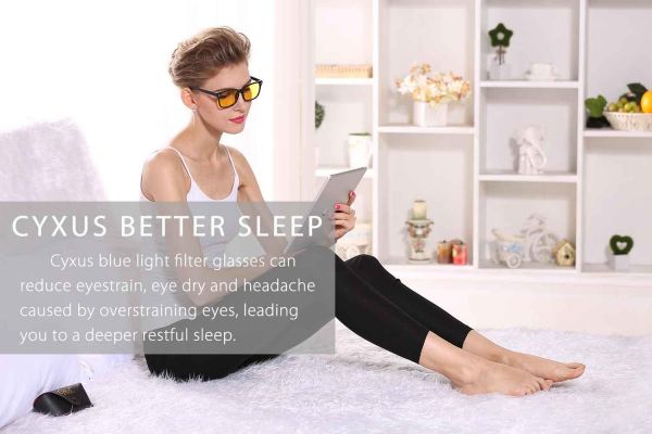 - Improving Sleeping: People who use their devices before bed have a harder time falling asleep and staying asleep. Cyxus glasses work by blocking the blue light rays you are exposed to from your devices, you can still enjoy your device from the comfort of your bed and get a restful deeper sleep.