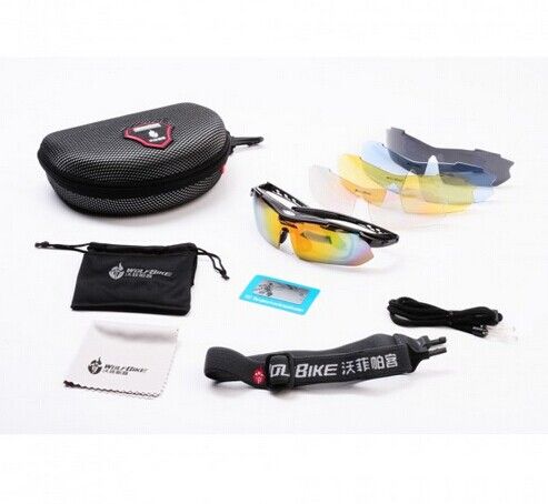 1 polarized lens and 4 pairs of polycarbonate lenses for replacement according to different circumstances.