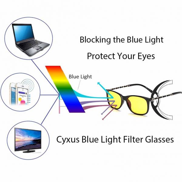 - Improving Sleeping: People who use their devices before bed have a harder time falling asleep and staying asleep. Cyxus glasses work by blocking the blue light rays you are exposed to from your devices, you can still enjoy your device from the comfort of your bed and get a restful deeper sleep.
