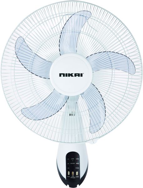 NIKAI 16” WALL FAN POWER 45W HIGH PERFORMANCE COPPER MOTOR WIDE ANGLE HORIZONTAL OSCILLATION 5 LEAF “AS”TRANSPARENT BLADES 3 SPEED: LOW/MED/HIGH AC 220-240V-50/60Hz