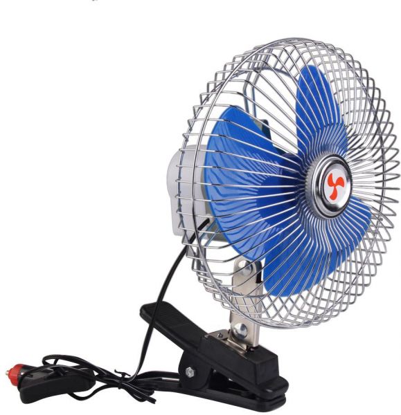 12V Oscillating Car Fan, Full safety metal guard The oscillating motion of the fan allows the air to be circulated throughout your whole car. The 12V Oscillating Auto Fan plugs right into your car's cigarette lighter so you don't need any extra batteries. This fan is ideal for cars, trucks, buses, off road equipment, boats and other recreational vehicles. Works off your car accessory outlet, and provides cool relief on even the hottest days. This item includes a cigarette lighter plug. Material: Metal, superior plastic Operated by 12V DC 25W Dimension: 8 inch Fan Diameter: approximately 22cm Color: As shown