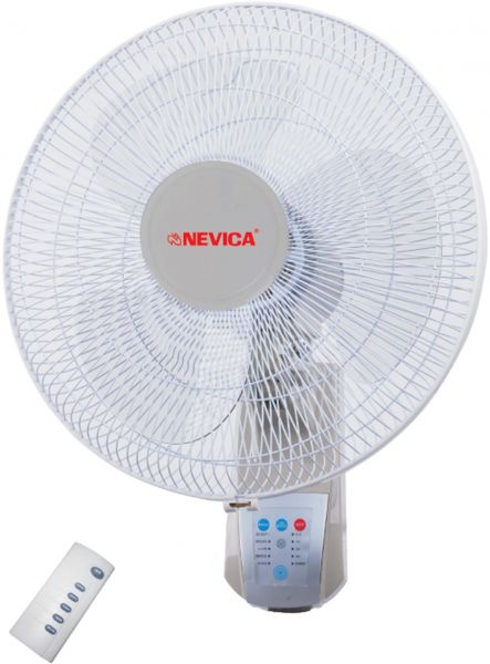 NEVICA 16" WALL FAN WITH REMOTE CONTROL 3 SPEEDS - OSCILLATION SUPER QUIET OPERATION CHILD PROOF GRILL LONG LASTING HIGH SPEED MOTOR 7.5 HOUR TIMER COLOR GREY 220/240V 50/60Hz. 55W