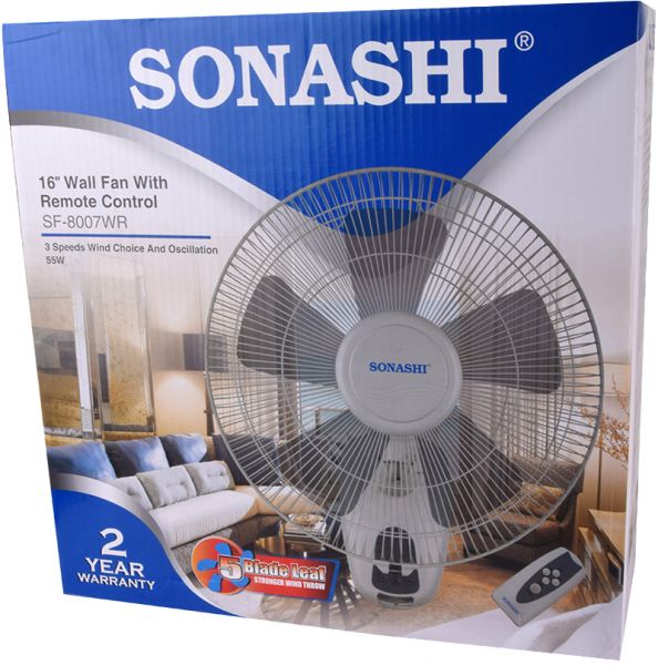 The Sonashi 16" Wall Fan with Remote Control - SF8007WR built to provide you with the best possible personal luxury. The powerful motor promises great air circulation while the wide angle oscillation allow maximizing your personal comfort. Perfect for the home or office environment!. Easy to install and disassemble.