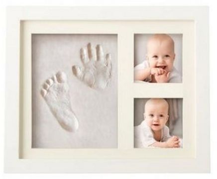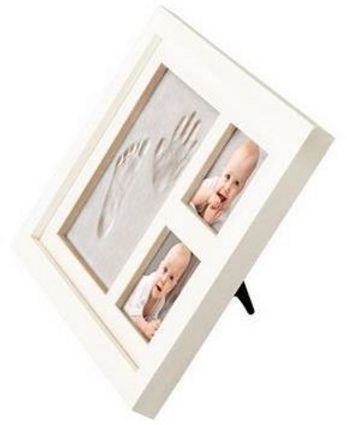 - HOLDS TWO PICTURES - Sturdy white baby frame holds two pictures and one clay impression for you to be creative!