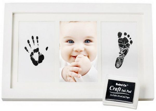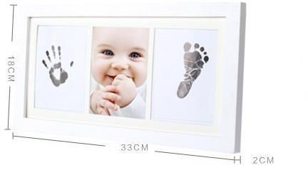 INCLUDES EVERYTHING YOU NEED - Solid wooden photo frame in white measures L 33 x H 18 x D 2CM. Quality real wood frame with safe acrylic glass sets easily on any surfaceADD YOUR BABY'S PICTURE - Baby hand and footprint kit features photo insert for standard 11 x 9CM photograph and positions it in the center so your baby takes the spotlightACID-FREE BEVELED MAT INCLUDED - Acid-free mat included in the baby footprint kit and keeps photo and baby prints safe for years.NO MESS AND QUICK TO MAKE! - Baby handprint kit comes complete with non-toxic ink pad designed to capture the finest detail of your baby's hand and feetREUSE THE INKPAD FOR OTHER PROJECTS - Create a treasured baby keepsake in minutes. Perfect for baby shower, baby registry, or baby gift for new parents