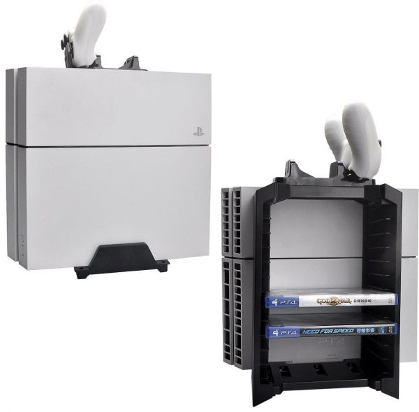 piece of cake. ATTENTION:ps4 console and controllers are not included - Easy gaming storage, you can put the console in the back of this stand, space saving!