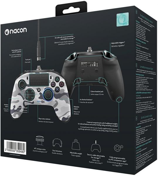Nacon Revolution Pro controller is available in a camo gray finish. You can buy this Nacon PS4 controller from Souq.The Nacon PS4 Revolution Pro Controller, with its advanced features, maximizes your gaming potential. It elevates your skill with its advanced yet easy-to-access controls. This Nacon PS4 controller is developed and designed for casual gamers and eSports players alike. It has a 3m detachable cable that can be connected directly to a USB port on any PlayStation 4. This Nacon controller has two analog sticks with an amplitude of 46 degrees for an incredibly high level of accuracy. Furthermore, the dual analog triggers and shoulder buttons give you an edge over the rest with their excellent responsiveness. The 8-way directional pad delivers excellent precision to take your gaming to the next level. The Nacon Revolution Pro is available in a stylish camo gray finish.
