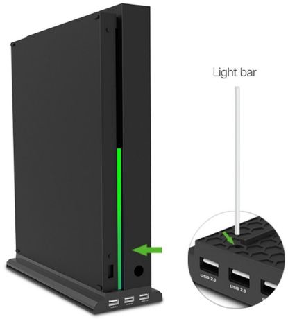描述:. Xbox One X Vertical Stand & Game Console Cooler Dock & 3 USB HUB Charger Ports(Controllers and console no included.)