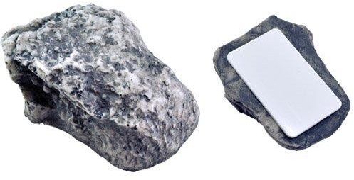 Molded poly-resin matches real rock in size, shape, texture,color weight weatherproof/wind proof