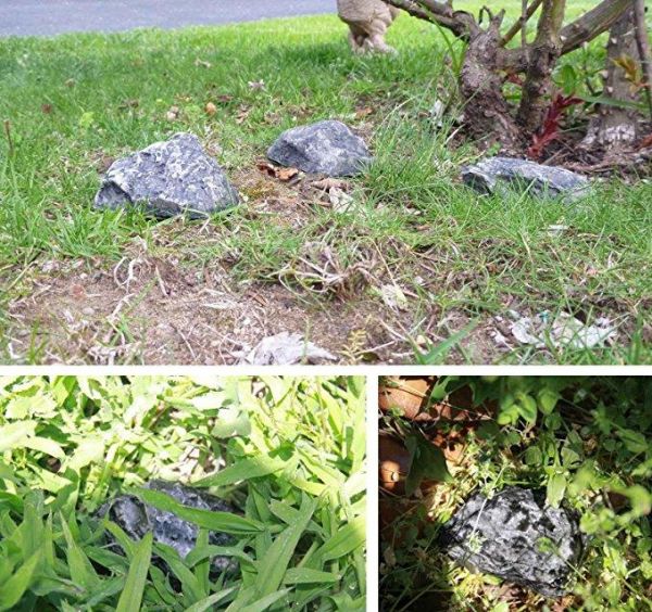 Goes 'undercover' among shrubs, grass or landscape rocks/wood chips; 3-3/8"L x 2"W x 1-1/4"H, 4 oz