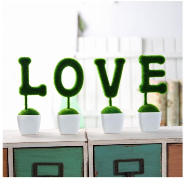4 Artificial Fake Heart LOVE Plant Grass Flower Ceramic Pot Home Wedding Decor