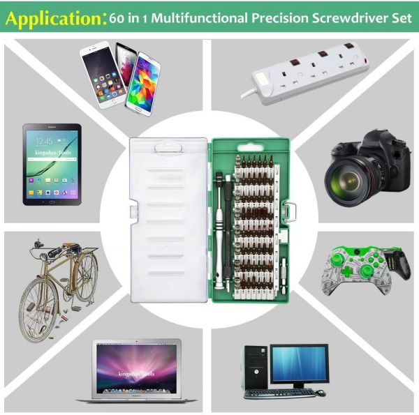 描述:Professional Repairing Tool Kit-- With 56 bits set you can open and fix all electronics such as laptop, tablet, cell phone, iPhone, computer, macbook air pro, nintendo, camera, PS4/Xbox controller, game console and other items.