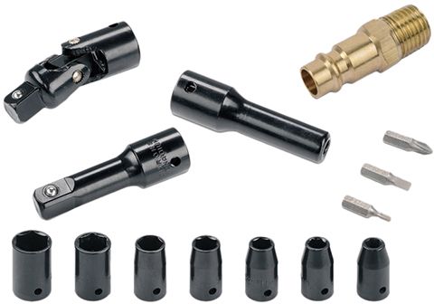 - Set Contents: 7 x Air Sockets, 1 x 1/2 inches x 3 inches Extension Bar, 1 x 1/2 inches U-joint, 3 x Bits, 1 x Bits Holder, 1 x Euro Nipple, 1 x Oil Pot, 1 x Blow Mold Case