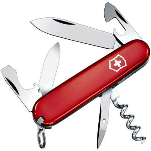 Victorinox Spartan Swiss Army Knife is useful in a variety of applications, both on outdoor trips and indoor repairs. It has 12 different functions, including a corkscrew for opening wine bottles, a pair of tweezers, a Phillips screwdriver and a wire stripper. This Victorinox Swiss Army knife also has a key ring for keeping it ready whenever you need it.