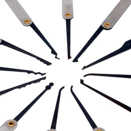 Including 12 lock picks in different shapes, can be used to open many different types of locks.