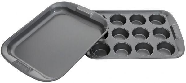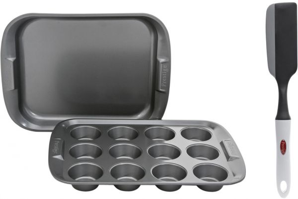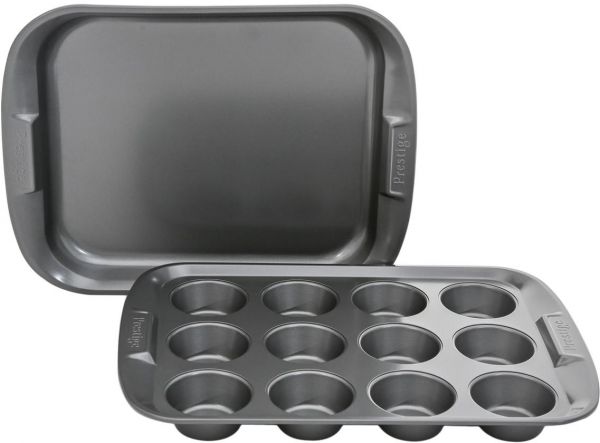 Making baked treats is easier and more enjoyable for bakers of all levels with Prestige Aluminum Bakeware with Nylon Spatula, Set of 3-Piece. Featuring a sturdy material, this set lasts for a long time. It comes with a 12-cup muffin bakeware, an oven tray and a Nylon spatula which are a must-have kitchen accessory for baking the perfect batch of goodies. They are oven and dishwasher safe. Great addition in your kitchen needs.