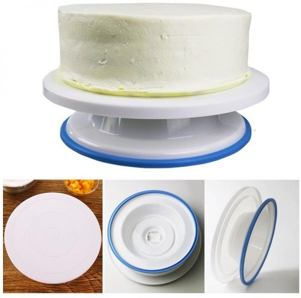 - Rotating Cake Turntable. With flexible axis, rotate smoothly in either clockwise or counterclockwise direction. It has an anti-slip base to fix the turntable.