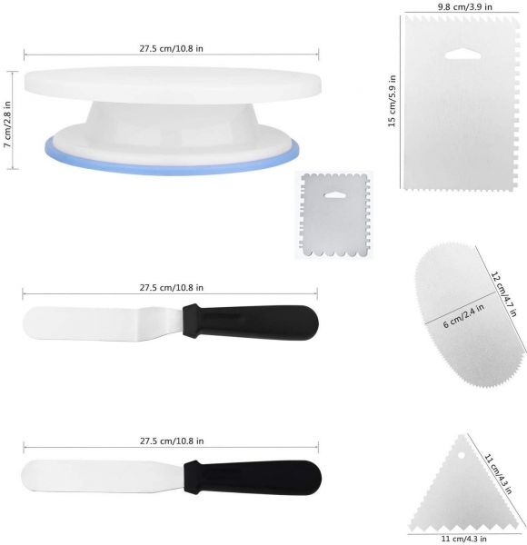 - Package: 1x Cake Stand, 2x Icing Spatula, 4x Icing Smoother