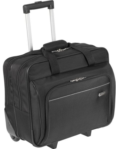 The Targus Traveling Rolling Case Laptop Bag is designed for working professionals who are always on the go. This transit case is designed for storing all kinds of essentials, including your laptop, its accessories, and clothing. The durable material from which this bag is crafted from water resistant 1200D polyester. This laptop bag for 15.6inch to 16inch laptops includes a large zippered compartment and a dual carry handle for convenience. Its front zip down workstation accommodates a range of products for peace of mind. Plus, its telescoping handle retracts into a zippered compartment when not in use.