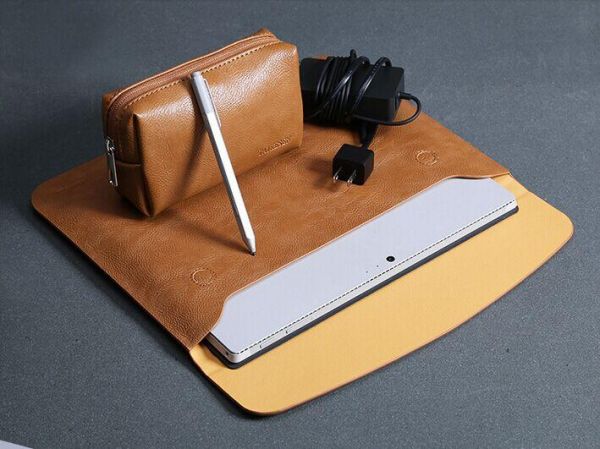 Tank bag Leather protective sleeve For Microsoft Surface Pro 4 12.3 inch with Power package Brown
